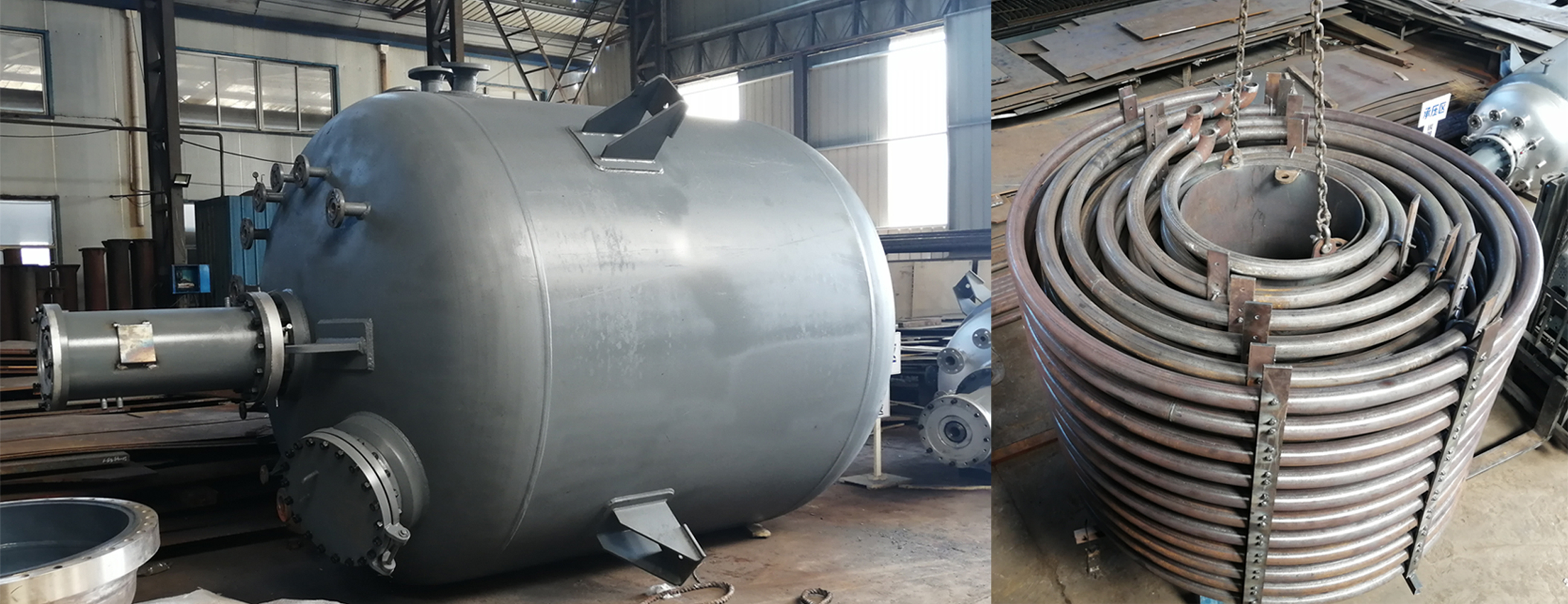 加氫反應(yīng)分為吸熱反應(yīng)和放熱反應(yīng),有些加氫反應(yīng)在反應(yīng)過程中會(huì)釋放大量的熱能。為了生產(chǎn)安全,并及時(shí)降低釜內(nèi)溫度,有些工藝要求釜內(nèi)配大面積的冷卻盤管。此時(shí)單層冷卻盤管無法滿足工藝要求,需要雙層或更多層盤管有效及時(shí)降溫。正威機(jī)械生產(chǎn)的6層盤管內(nèi)配吸氫攪拌槳,加…